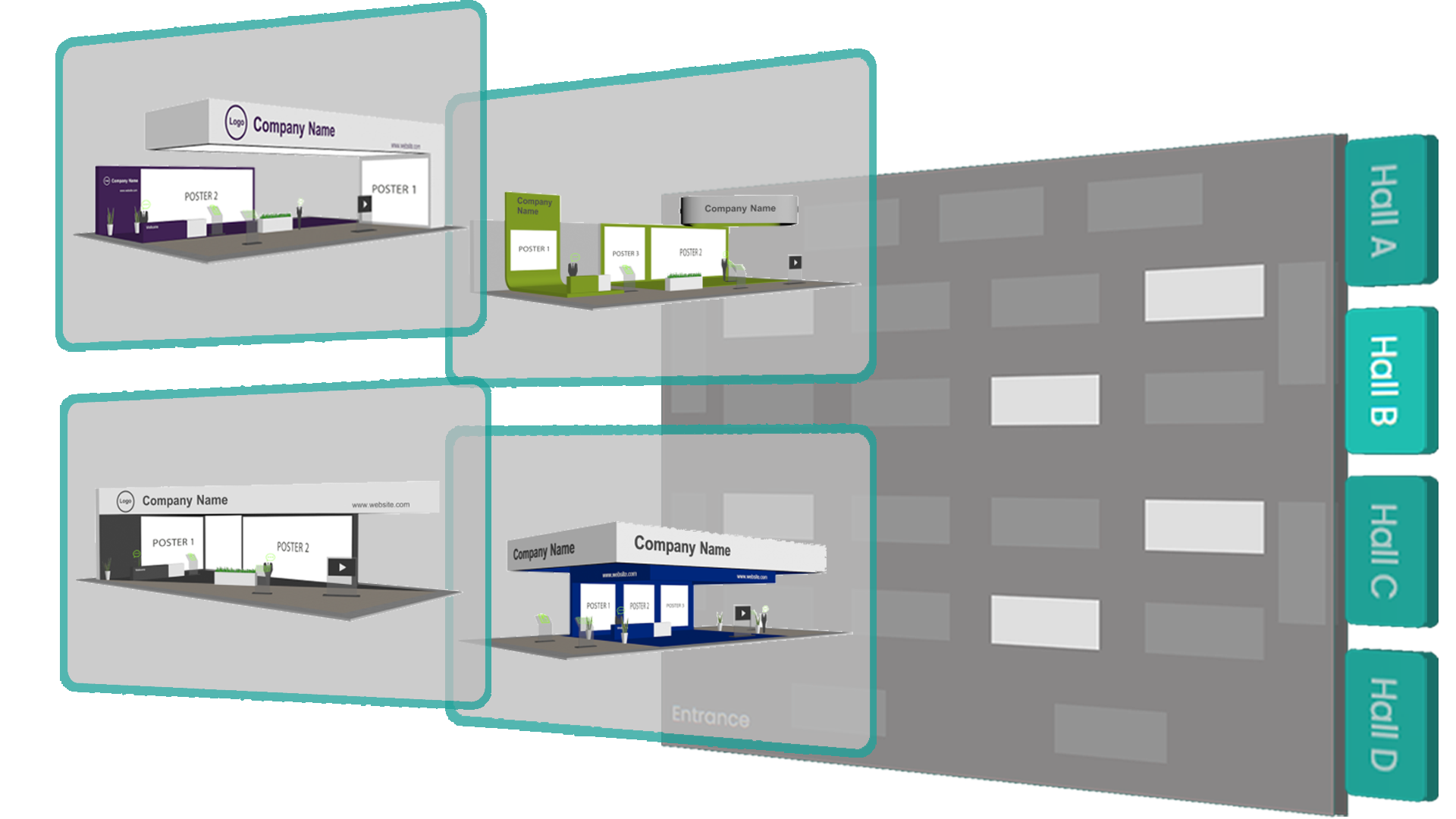 Capability for visitors to see companies' booths easily from different sides of view and locations of the hall to have a remarkable experience.